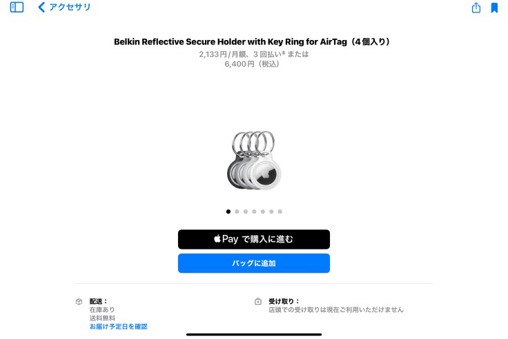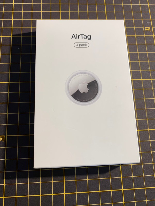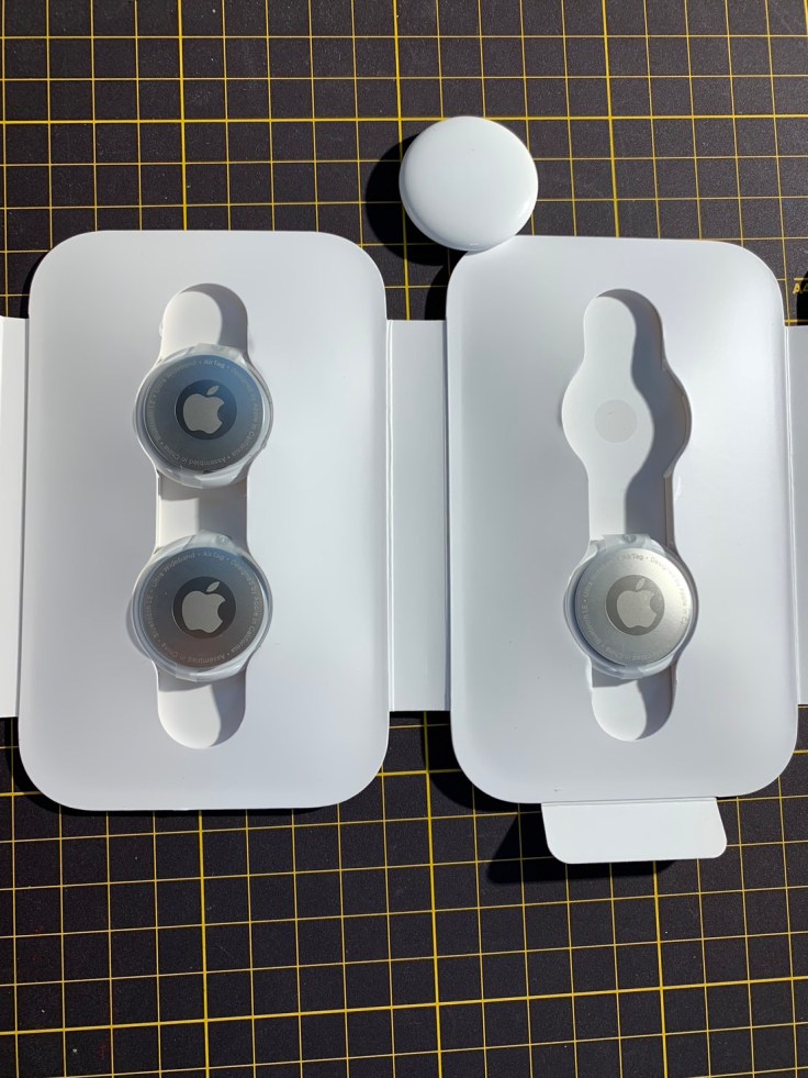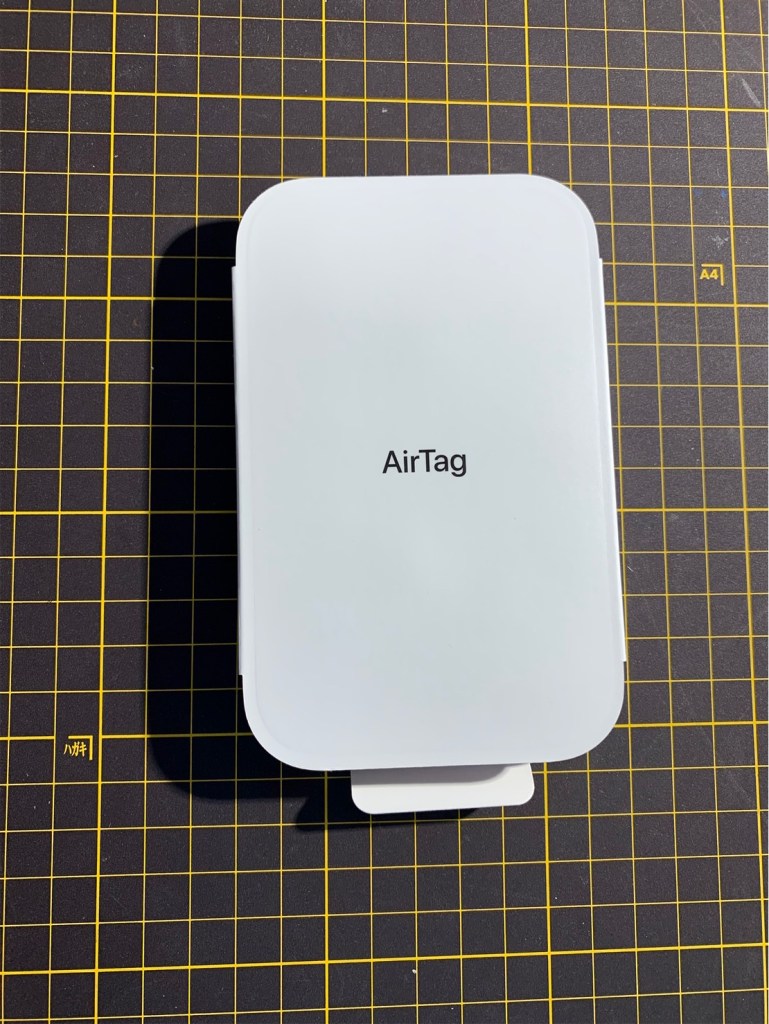 白くて角ばったパッケージの表には”AirTag”の製品名、